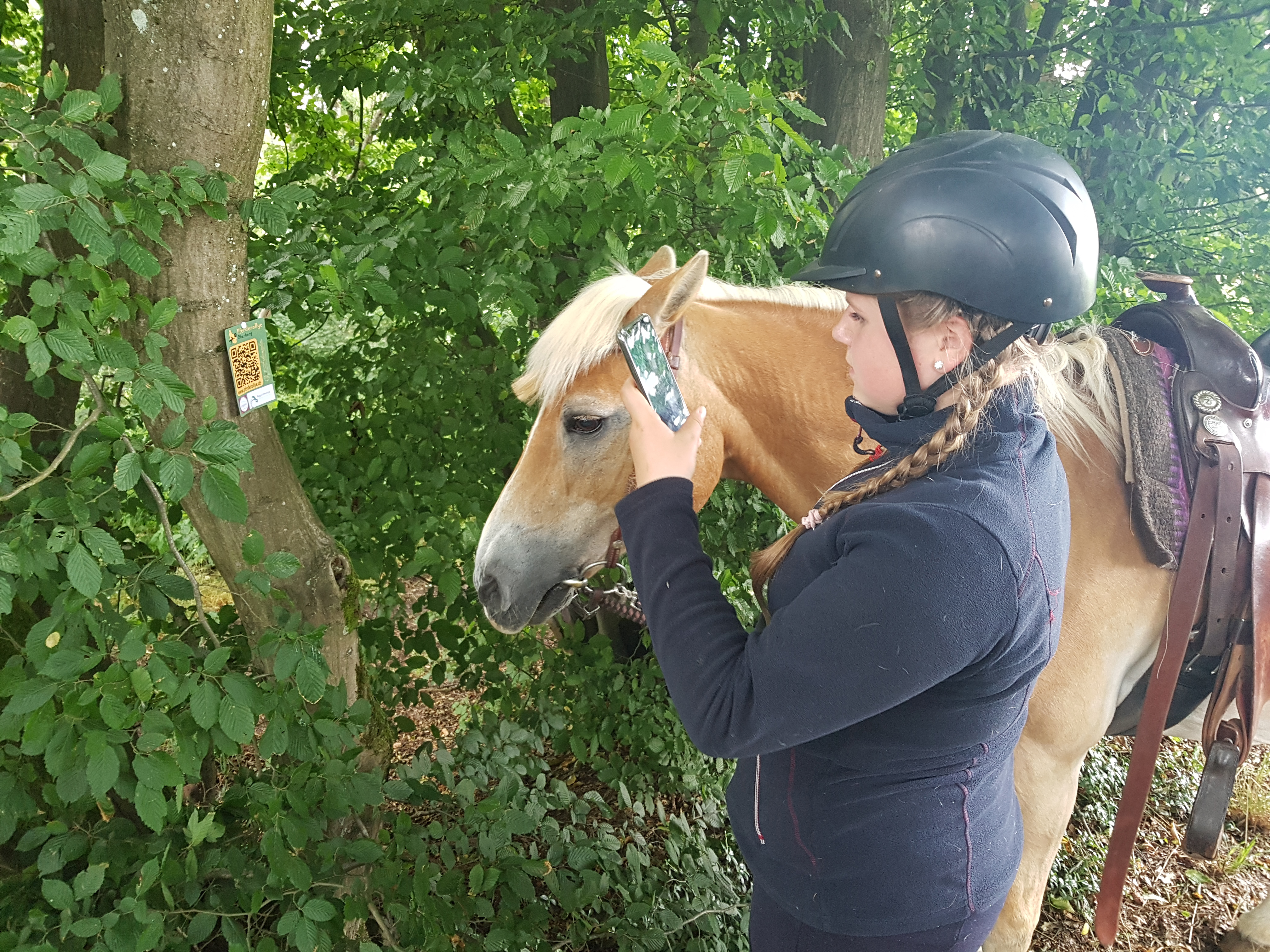 Foto 01 – Reiter beim Scannen von QR-Code (01.Juli 2020)