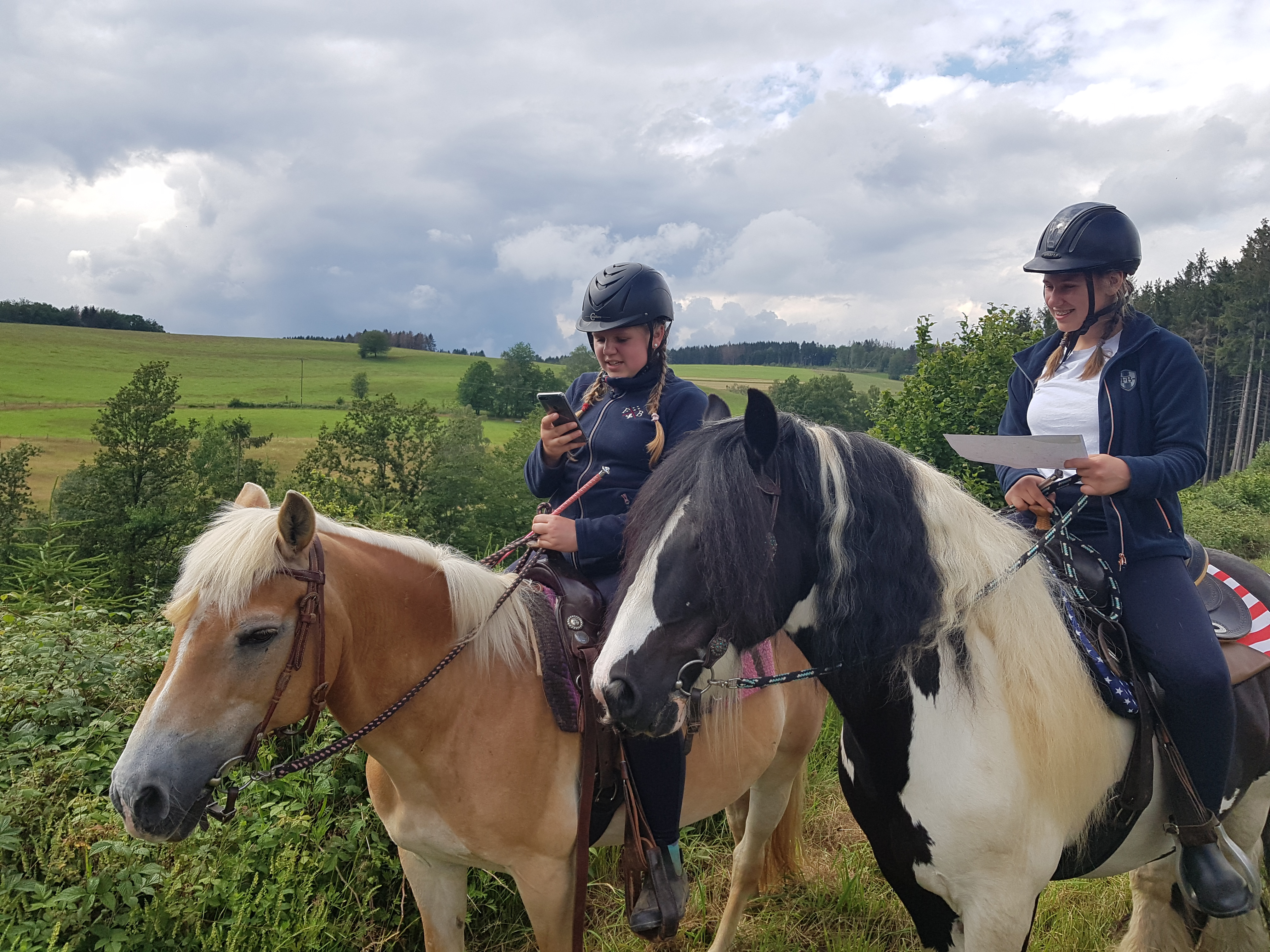 Foto 02 – 2 Reiter mit Karte und Handy (01.Juli 2020)